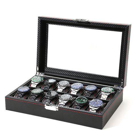 LAIHE-Boîte d'affichage de montre en cuir PU haut de gamme en fibre de carbone, 12 fentes, MDF, protection directe de l'usine, emballage de montre